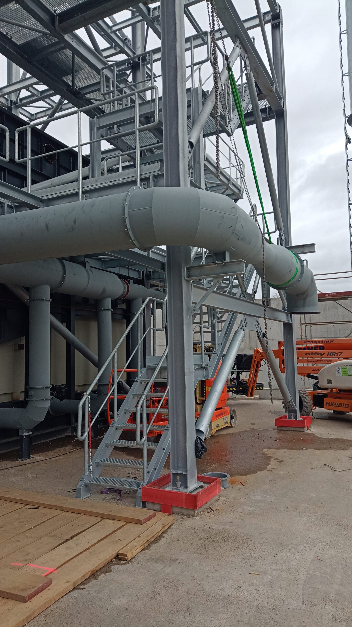 Zakres naszego kontraktu obejmuje dostawę i montaż 110 ton głównej oraz drugorzędnej konstrukcji stalowej budynku kotła wraz z platformami oraz barierami. Dodatkowo, w zakresie kontraktu znalazł się montaż mechaniczny 200 ton urządzeń technologicznych. Budynek kotła, który powstaje w ramach kontraktu, będzie częścią elektrociepłowni opalanej biomasą.