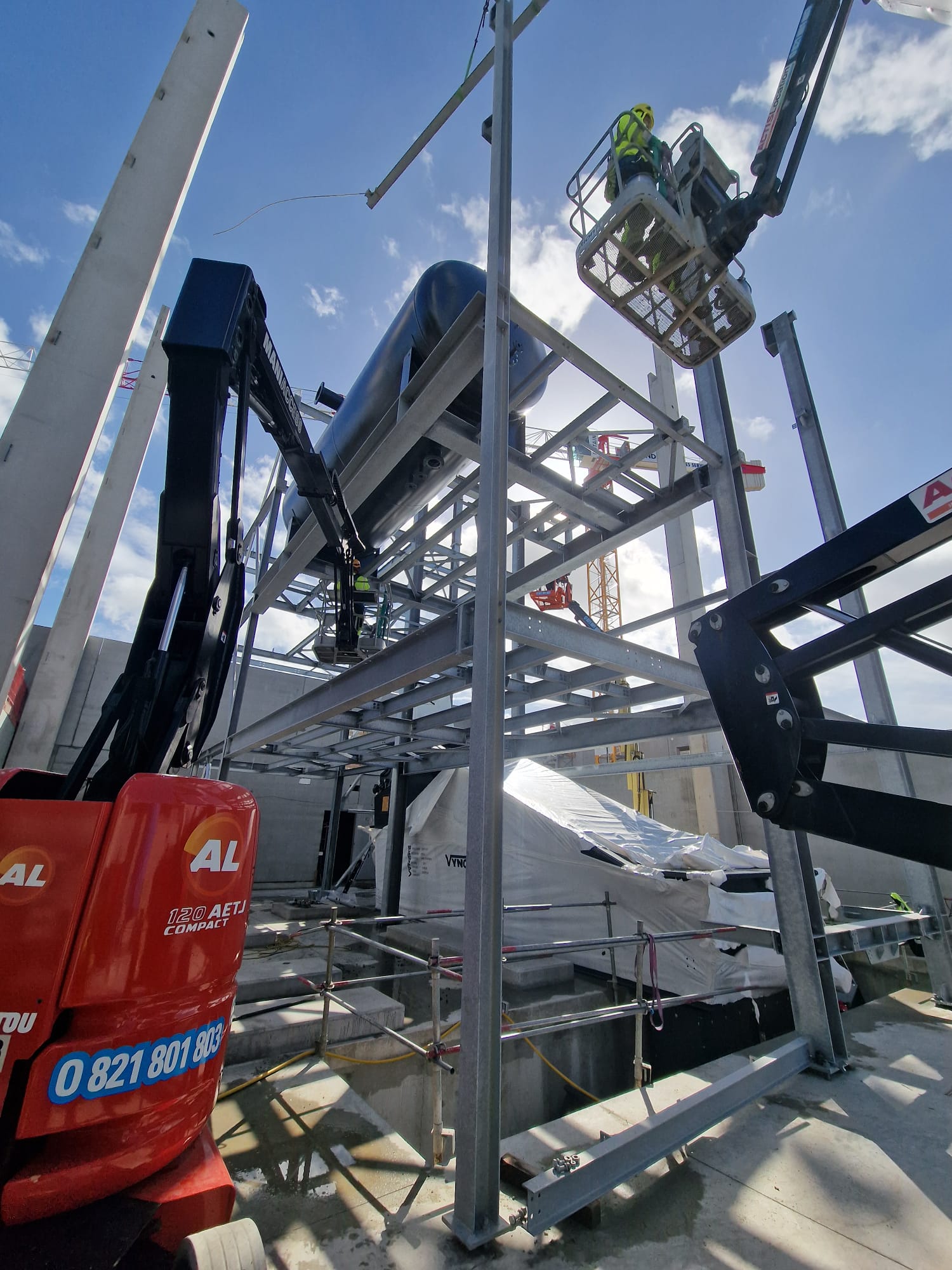Zakres naszego kontraktu obejmuje dostawę i montaż ponad 50 ton głównej i drugorzędnej konstrukcji stalowej, w tym: krat, drabin, barier oraz klatek schodowych. Nasz zespół w Crehen pracuje na placu budowy zakładu, który opalany będzie drewnianymi odpadami pozyskanymi z rozbiórek.