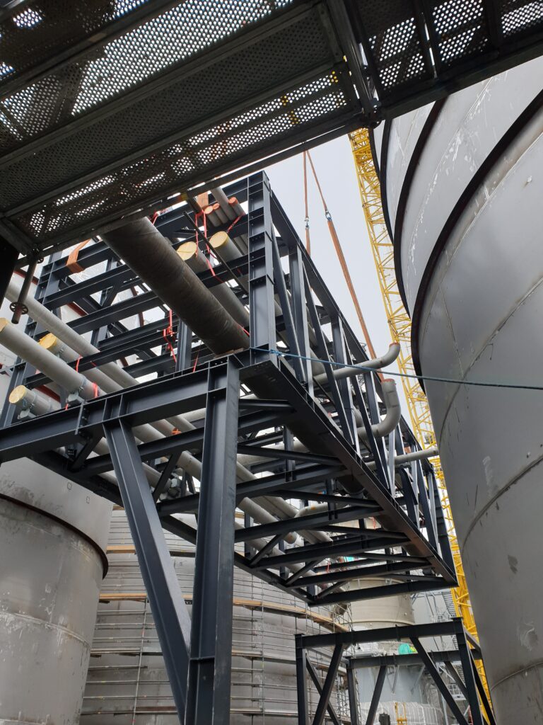 • dostawa i montaż drugorzędnej konstrukcji stalowej: platformy z barierami, kraty i drabiny