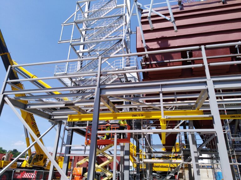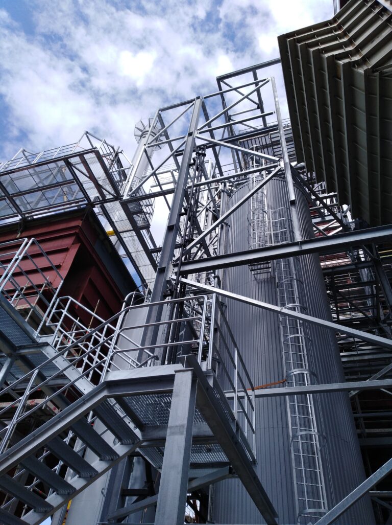 - dostawa i montaż drugorzędnej konstrukcji stalowej: platformy z barierami, kraty i drabiny